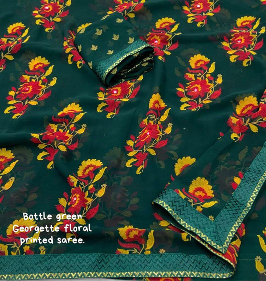 Soft Georgette Saree with Dark Round and Multicolour Floral Prints