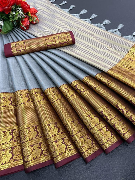 Elevate Your Elegance with Copper Jari: Premium Kalyani Cotton Saree