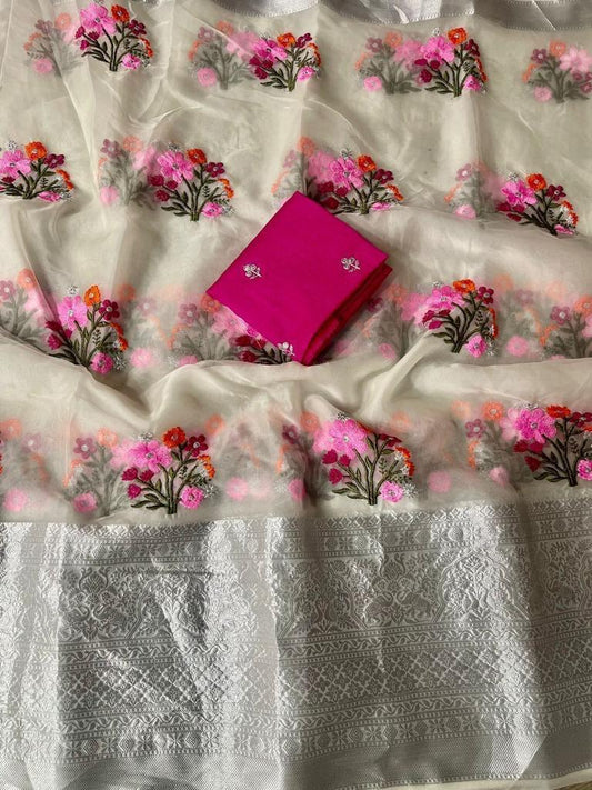 Elegant Silk Organza Saree & Blouse Set