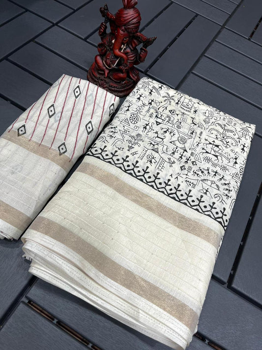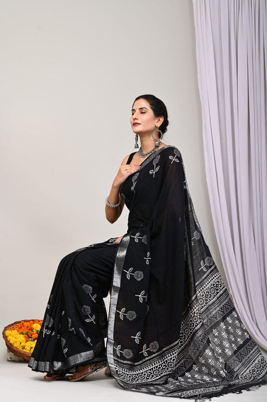 Elevate Your Style with Our Hand-Block Printed Linen Saree Collection!