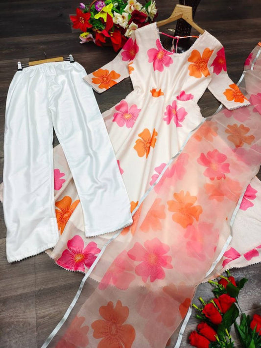 New 3 Piece Suit Garment Collection - Exquisite Naira Cut Long Kurti, Plazzo, and Dupatta Set!