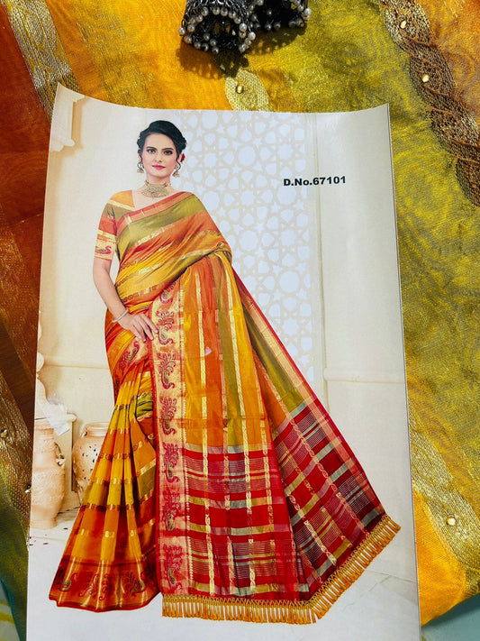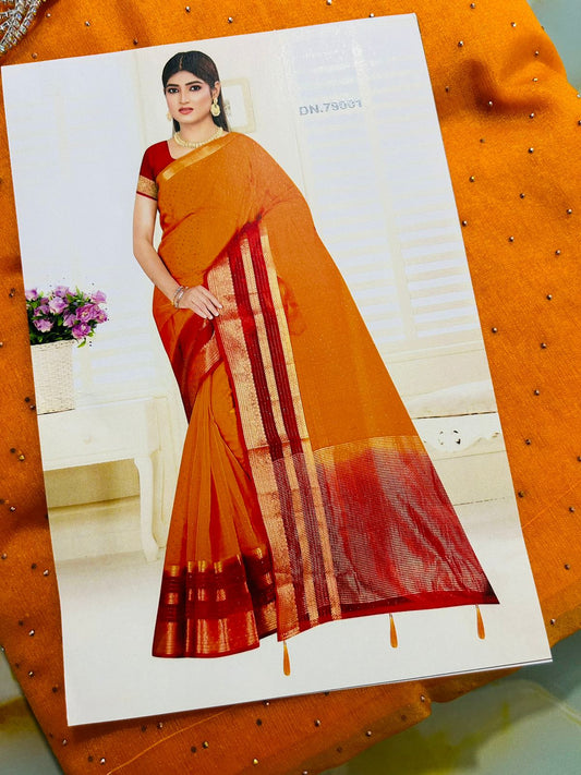 SaleORGANZA ORANGE SAREE